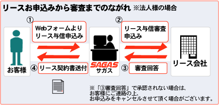 リースの与信審査申込みから納品までのながれは下記のようになります。