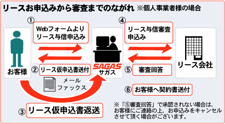 送信いただいたフォームの内容にてリース契約の与信審査を行います。 但し、個人事業者様のお申込み、または新規開業(予定)の方のお申込みの場合など、 「リース与信申込み」フォームよりお申込みいただいた上で、書面(捺印含む)でのお申込みが必要になる場合がございます。