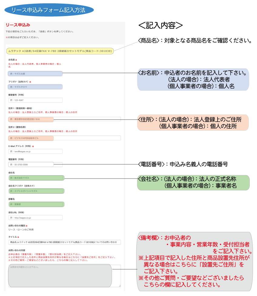 「リース申込みフォーム」に必要事項を入力の上、「送信」してください。