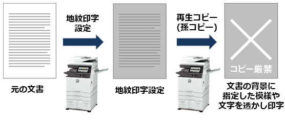 普通に見た時はわかりませんが、そのコピーをさらに「再コピー」すると背景に「コピー禁止」や「社外秘」という文字が浮き出る機能です。