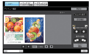 原稿をスキャンした後、実際に出力する前に操作パネルの画面で「仕上がりイメージ」を確認できる機能です。画像の切れ、表裏の向き、パンチ穴の位置などを事前にチェックできます。