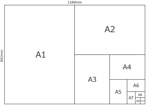 - A判(国際標準):ドイツの物理学者オズワルド氏によって提案された世界基準の規格です。面積が1平方メートルの長方形(A0)を基準とし、その縦横比はどこまで半分に折っても維持される「白銀比(1対ルート2)」となっています。