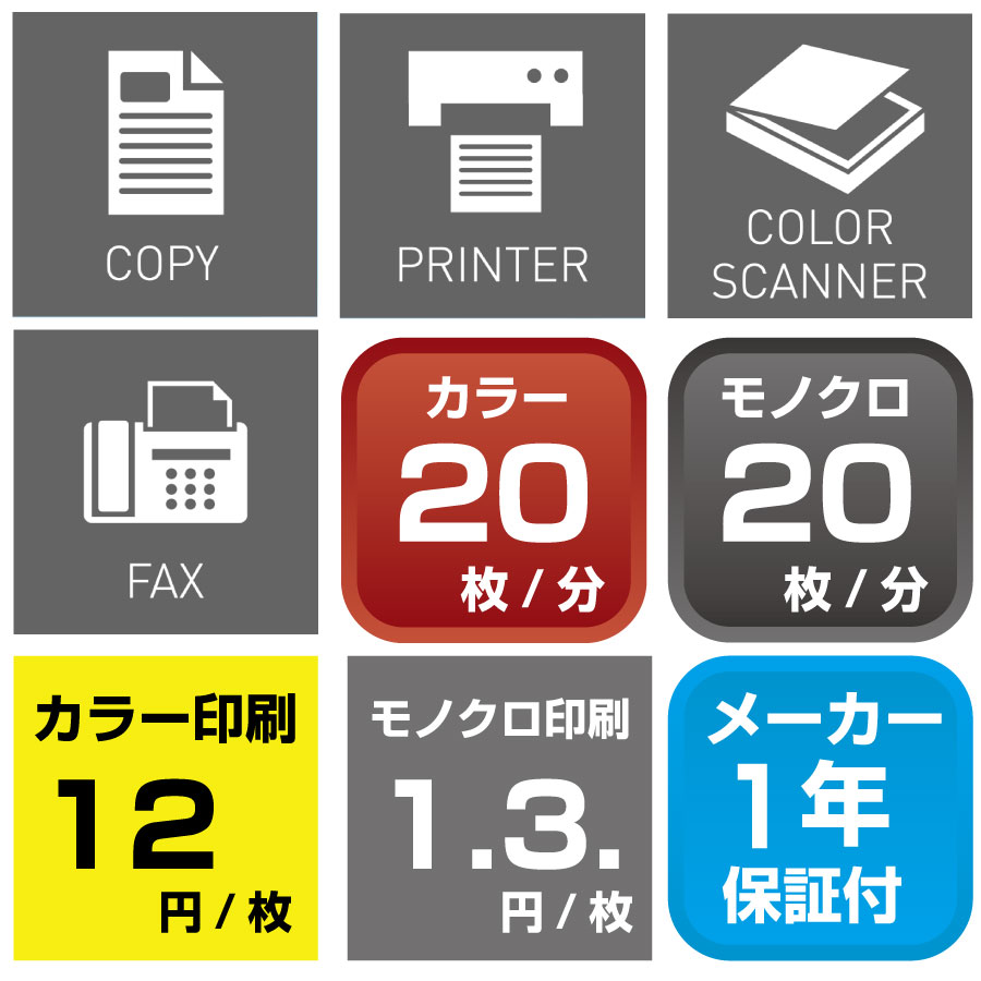 一般企業のオフィスでよく採用される「毎分20〜25枚印刷」クラスで、業務用として充分な耐久性を持ち、 コストパフォーマンスも良い商品です。「ペーパーレス化」も進んだし、いまの仕事に必要な機能があって、扱いやすい複合機がいい! という全ての方におすすめの一台です。業務用だから、万一の故障が発生してもサービススタッフが出張修理をいたしますので安心してご利用いただけます。