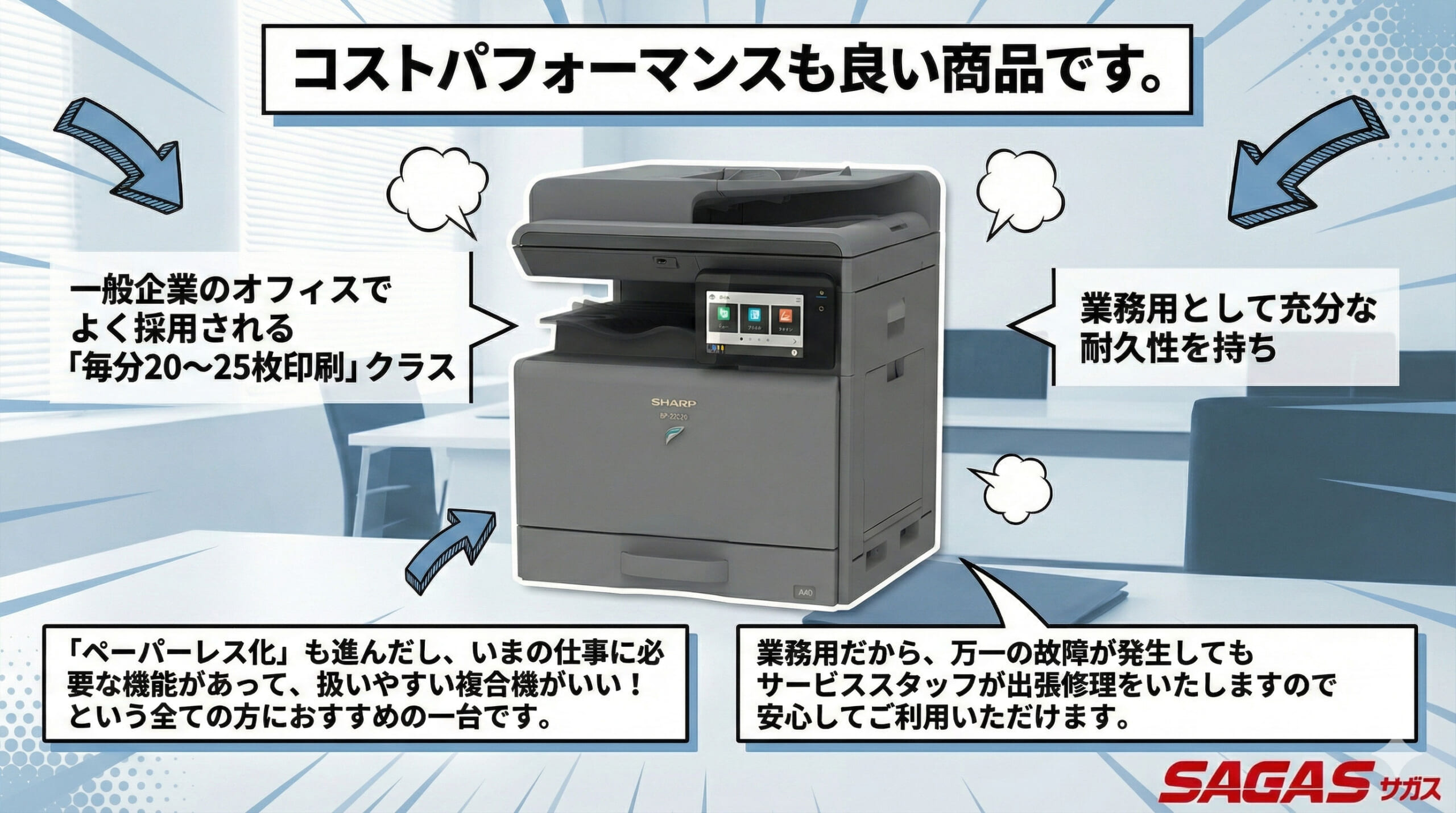 サガスだからできる特別価格!業務用複合機を半額以下でご用意しています。