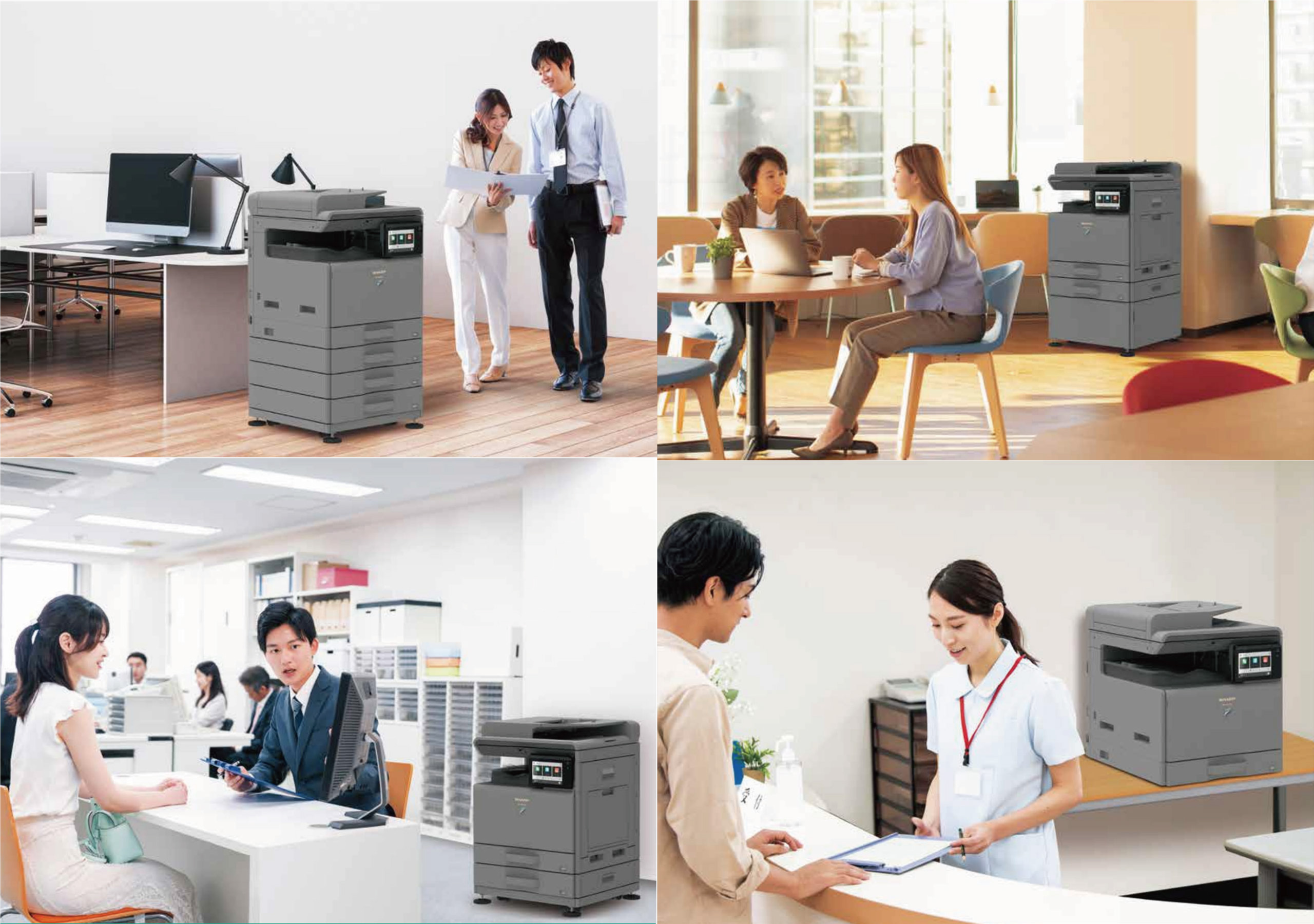 シンプルで洗練された姿はどんなオフィスにも馴染み、「そこにあればいい」というより「そこにあってほしい」複合機です。 オフィス、クリニック、店舗、商業施設の受付カウンターや自宅兼事務所のスペースなど、人の目に触れるところでも馴染むので気になりません。