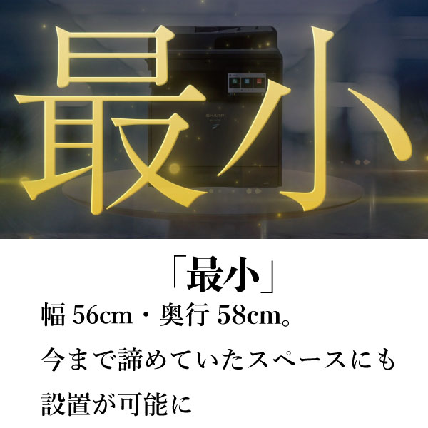 シャープ「BP-22C20」は最大A3サイズまで対応する業務用複合機の中で 幅・56cmとA3レーザーカラー複合機で「最小」のモデルです。 オフィスのスペースは大事な「財産」ですので、コンパクトなこの機種を選んで、より効率のいいオフィスを設計しましょう。