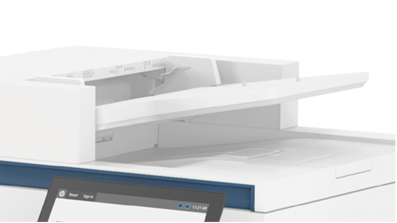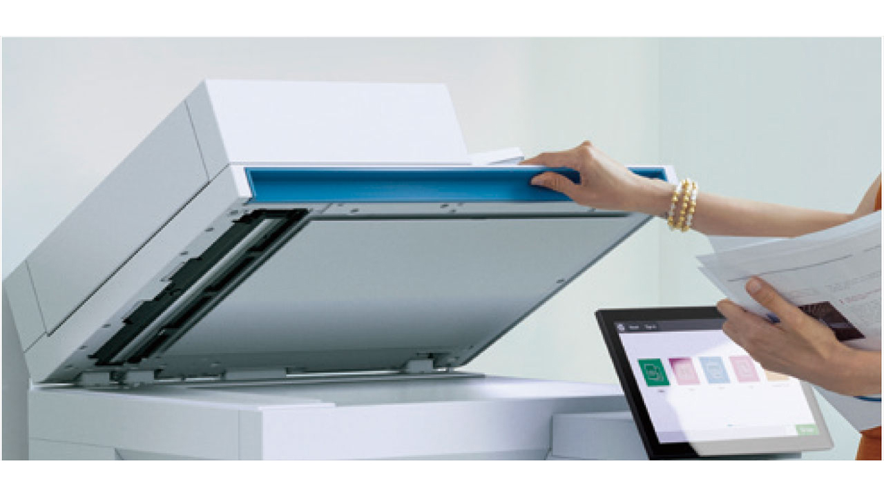 ブック原稿など、冊子型の書類もガラス面のついた原稿台でコピー・スキャンが可能。あらゆる書類の電子化に活躍し、今後の業務効率化や、社内情報の統合・保管も楽になります。