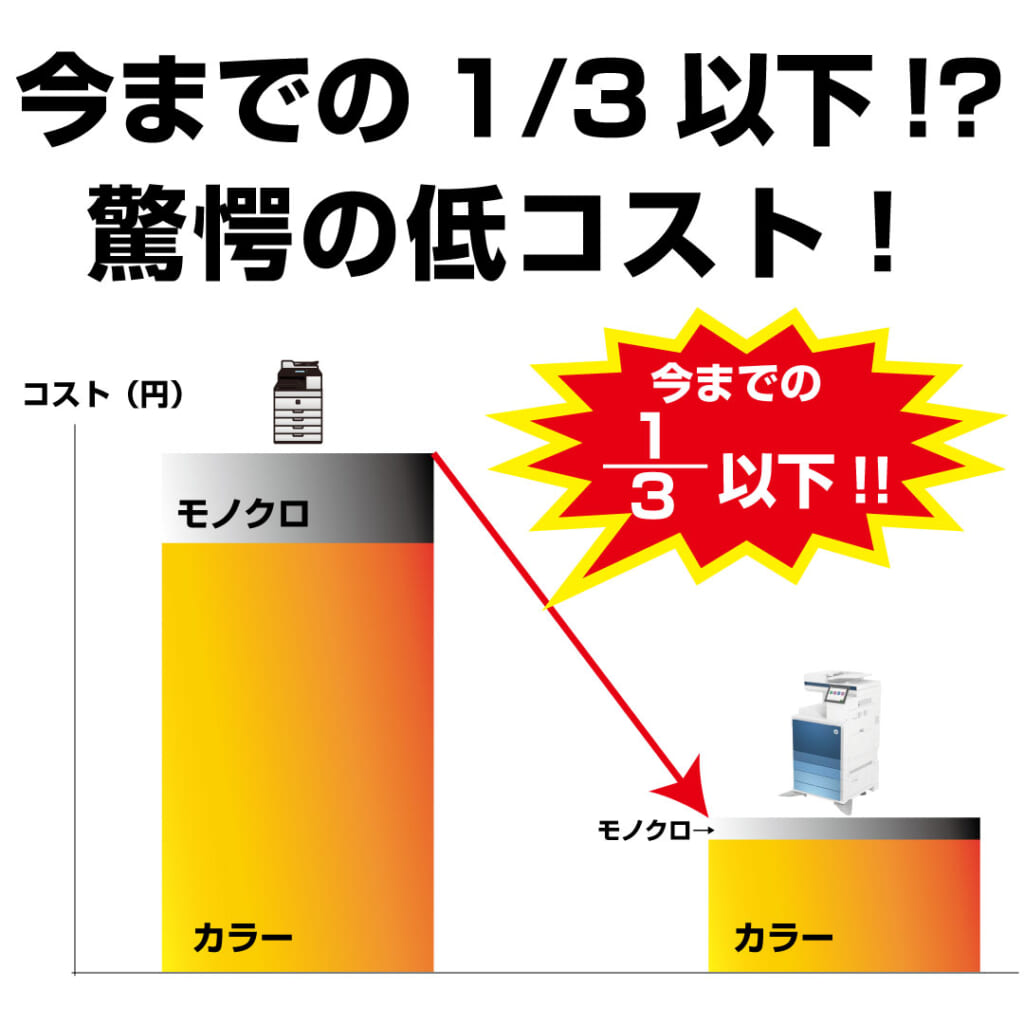 1/3以下になります。(※印刷枚数などによりコスト削減額は変動します。)