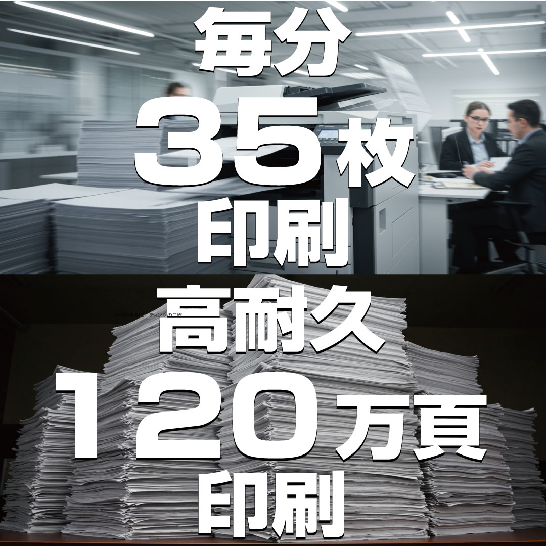 - 毎分35枚印刷・120万ページ耐久の高性能複合機