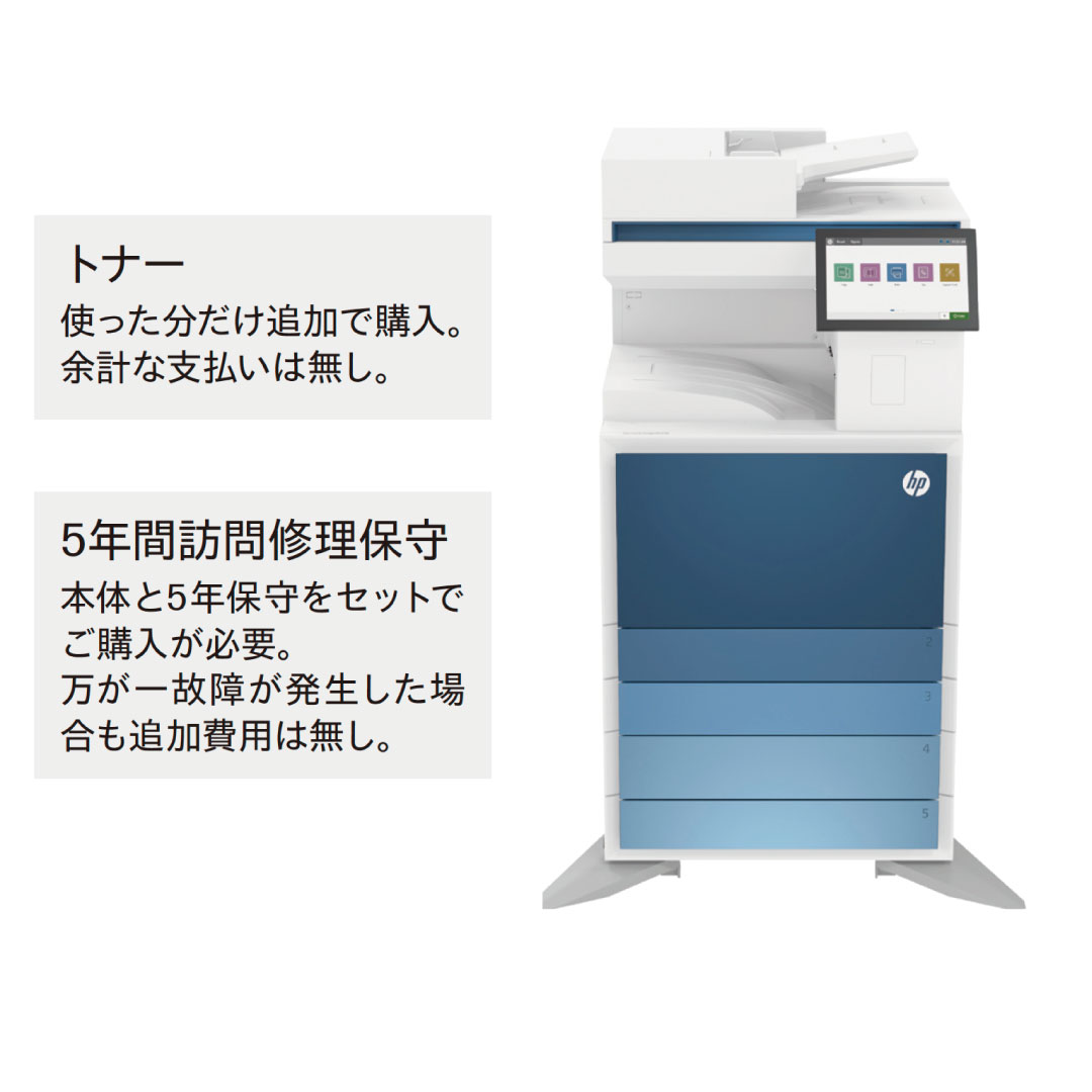 導入から5年間の出張保守サポート付きで、カウンター料金はなし。こんな複合機他にありません。