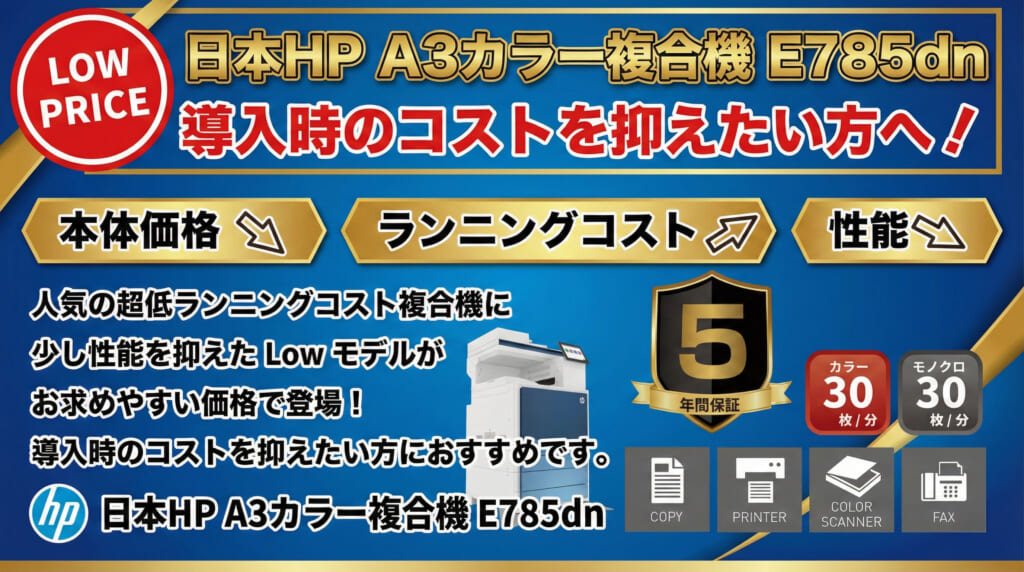 この3つを継承しさらに上回る『最適解』の複合機、それがHPのE786dnです。